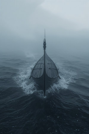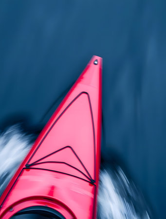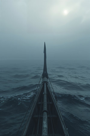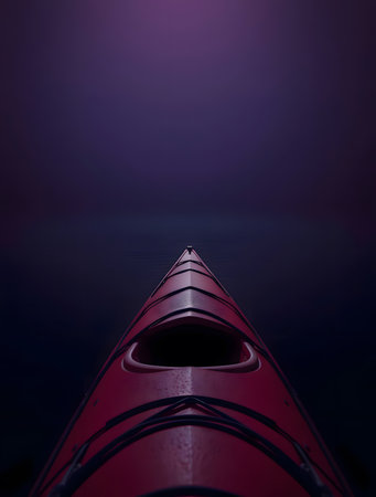 kayak on the lake in the mist at night. vertical photo