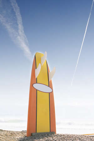 Minimalist surfboard graphic design against clear sky for branding and advertising