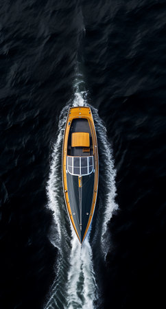 Aerial view of a speed boat sailing in the dark sea ai generated
