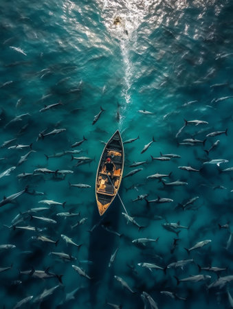 Generative AI : Aerial view of a shark freely swimming in open water