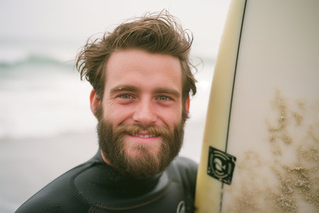 Surfer preparing to surf on the beach at sunrise