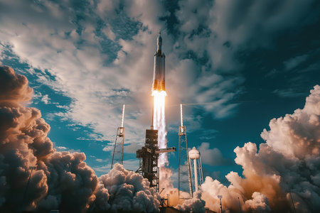 A rocket taking off into the sky. Created with Generative AI technology