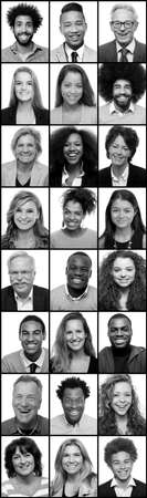 Collage banner with photos of confident business people smart casual wear, a lot of ambitious diverse office employees isolated on white