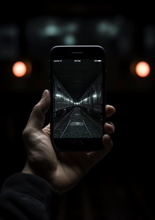 Stunning Nighttime Urban Scene of a Smartphone Capturing Bokeh Lights with City Life Vividly Alive