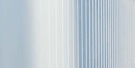 Vertical stripes in a gradient of blue shades from white to black, with subtle shadows creating depth.