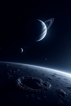 In a vast universe, a glowing celestial body illuminates an unseen landscape, creating a mesmerizing spectacle that inspires awe and wonder.