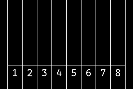 A black and white image featuring evenly spaced, vertical white lines on a black background