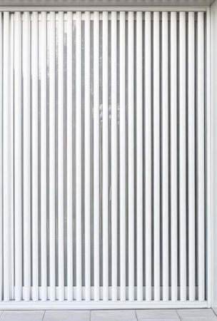 White metal shutter door background. White garage gate, metal material, steel