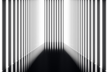 White neon stripes in black room. Computer generated abstract background. 3D rendering