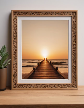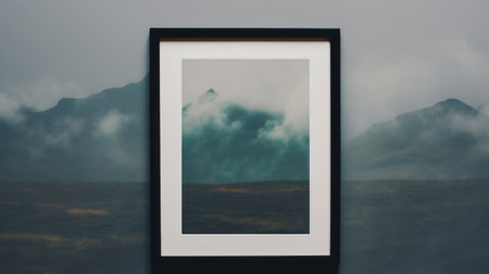 the 7x5 frame transfer mockup showcases a minimalist design, set against a misty background, emphasizing simplicity and elegance. perfect for displaying artwork, photographs, or inspirational quotes. the mockup seamlessly merges style and subtlety, creating a captivating visual impact for any space. ai generated