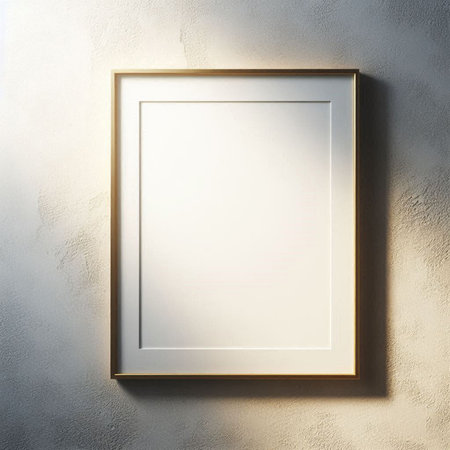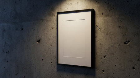 Blank picture frame hanging on concrete wall. 3d render illustration