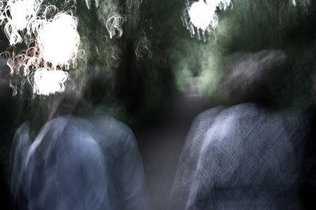 Two persons walking, blurred out