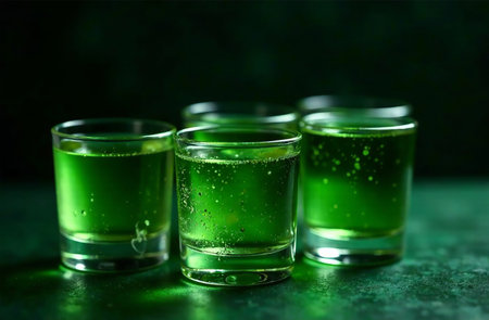 AI Generative Glass shot of absinthe on a dark background. Drink photo for bar restaurant