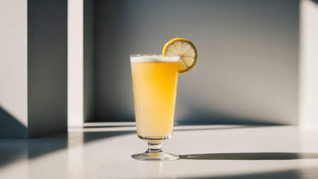 AI Generated. Refreshing lemonade beer with lemon slice on a dark background