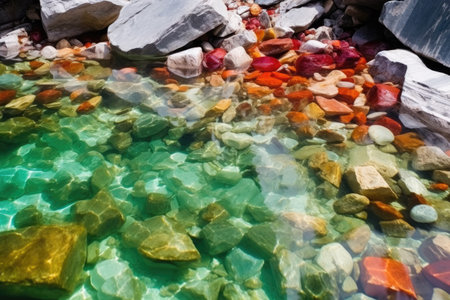 colorful stones at the bottom of a clear hot spring, created with generative ai