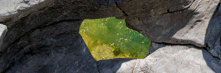 The Potholes of the Giants in the Toce River with green water and waterfall in Uriezzo.