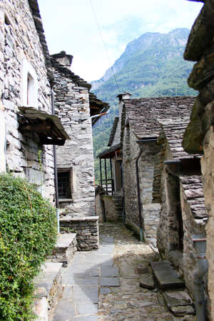 Traditional architecture and old houses in the hamlet of Ritorto (The Bavona Valley or Valle Bavona, Val Bavona or Das Bavonatal) - Canton of Ticino, Switzerland