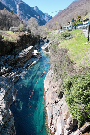 View of the Verzasca river in Lavertezzo, Verzasca Valley, Ticino Canton, Switzerland
