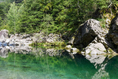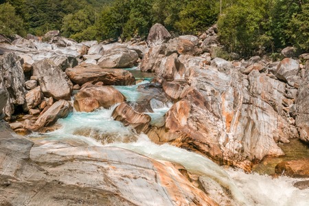 Tourquise clear Verzasca River in Lavertezzo, Ticino, Switzerland