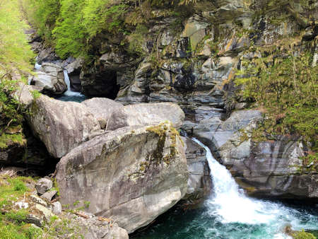 Cascades and waterfalls on the Maggia River (The Maggia Valley or Valle Maggia or Maggiatal) - Canton of Ticino, Switzerland