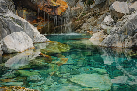 a tranquil natural pool hidden amidst rocky terrain, created with generative ai