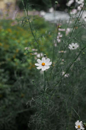 Cosmos flowers blooming in the garden. Winter season.