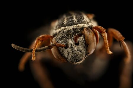 Triepeolus obliteratus, bee Macro , Closeup of face fluffy head of bee, Flying insect
