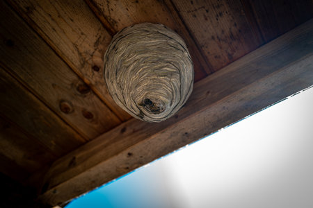 Paper wasps are guarding and protecting their nest and young. They look fierce and dangerous.