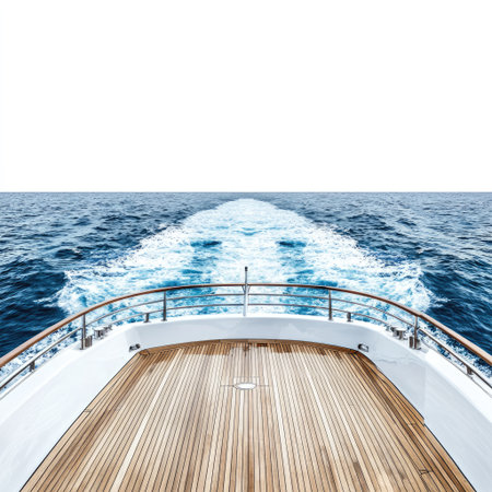A luxury yacht with a panoramic view from the deck, isolated on white, ideal for showcasing a refined cruising experience.
