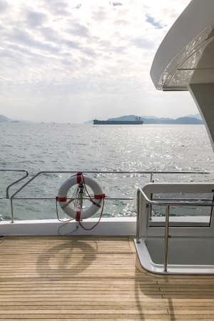 Beautiful view from the deck of a luxury yacht in the open sea.