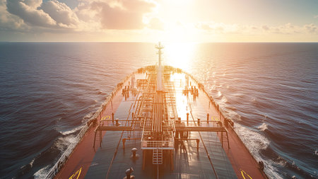 Massive oil tanker sleek hull slices through water with purpose. Transportation essential resources across globe. Complexity of maritime industry