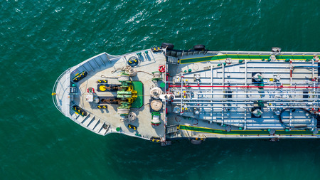 Aerial view oil / chemical tanker in open sea, Refinery Industry cargo ship.