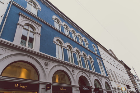 COPENHAGEN, DENMARK - March 11th, 2018: Architecture and details of Stroget the main shopping street of Copenhagen city centre