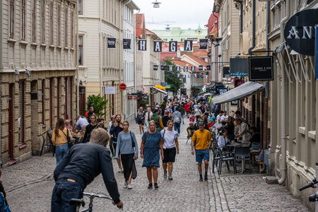 Gothenburg, Sweden - July 30 2023: Tourists walking through Haga in summer