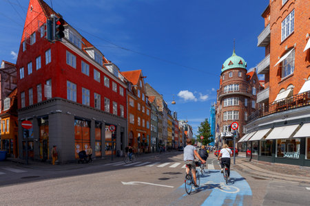 Copenhagen, Denmark - August 10, 2016. Street in historical city centre of Copenhagen. The bicycle is the typical mode of transport in Denmark