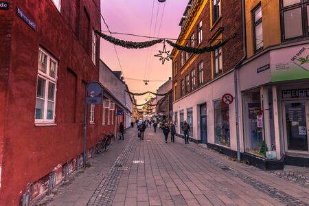 Aalborg, Denmark: Charming quiant streets with colorful traditional danish houses in historic Aalborg old town Aalborg, Denmark