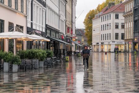 Copenhagen, Denmark - October 21, 2019: Street view in the Central Copenhagen, Denmark