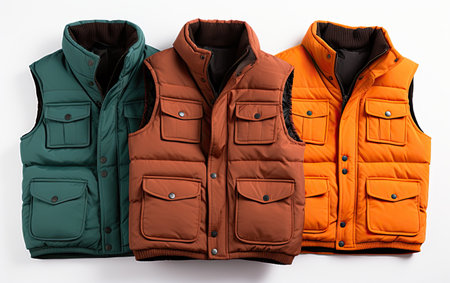 The image features a blue padded vest displayed on a dark textured background, highlighting its design and details. Perfect for fashion and apparel promotions.