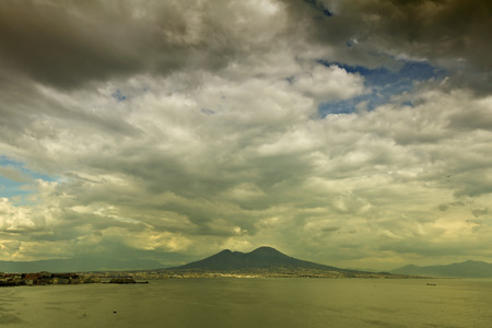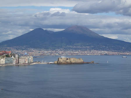 Cloudy day, Naples cityscape and Vesuvius from the Mergellina sea. Italy