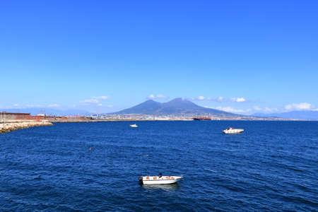 Napoli and mount Vesuvius in the background in a summer day, Italy, Naples, Campania