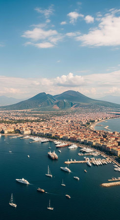 Panorama of Naples, view of the port in the Gulf of Naples,