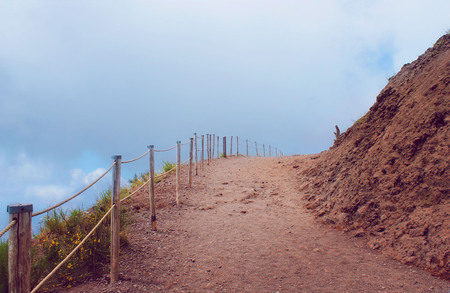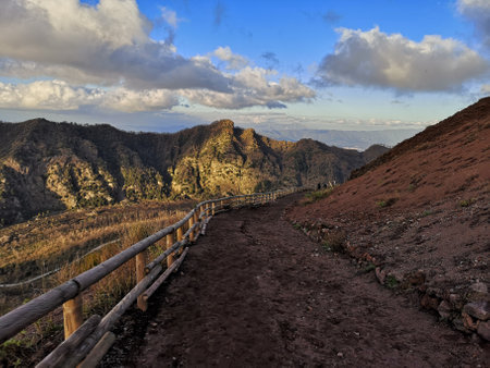 Hiking trail along edge of active volcano crater of Mount Vesuvius, Province of Naples, Campania