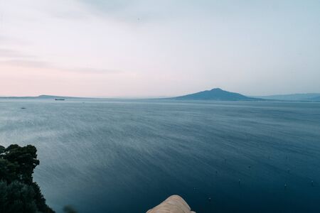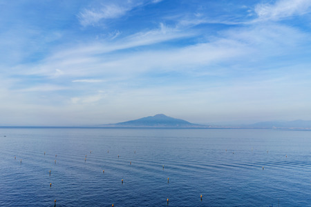 Picturesque morning view of Gulf of Naples and Mount Vesuvius on the background. View from Sorrento city Campania province Italy