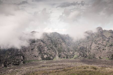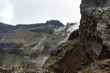 Image of Vesuvius Crater in the clouds in cloudy weather, Italy