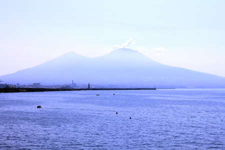 Defocused background of Vesuvius and the city of Naples seen from the sea.