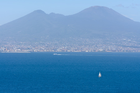 Panoramic view with sea and mount Vesuvius. Napoli (Naples) and mount Vesuvius in the background in summer day, Italy.
