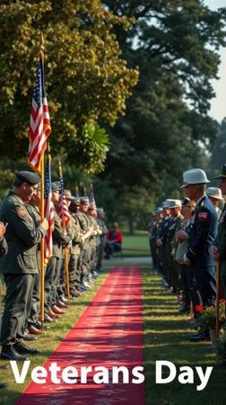 American flags proudly displayed by veterans during a public ceremony. Celebrating Veterans Day.