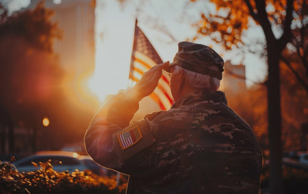 On Memorial Day, a US army veteran salutes with American flag AI Generation