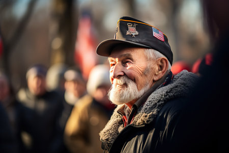 A Distinguished Elderly War Veteran Proudly Honoring Courage and Sacrifice with a Patriotic Spirit