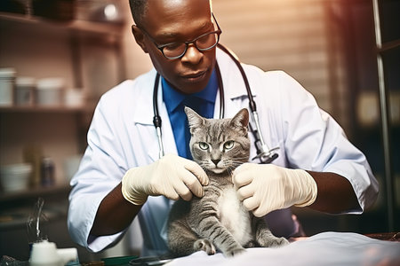 A Veterinarian examines a Cat, World Veterinarian Day